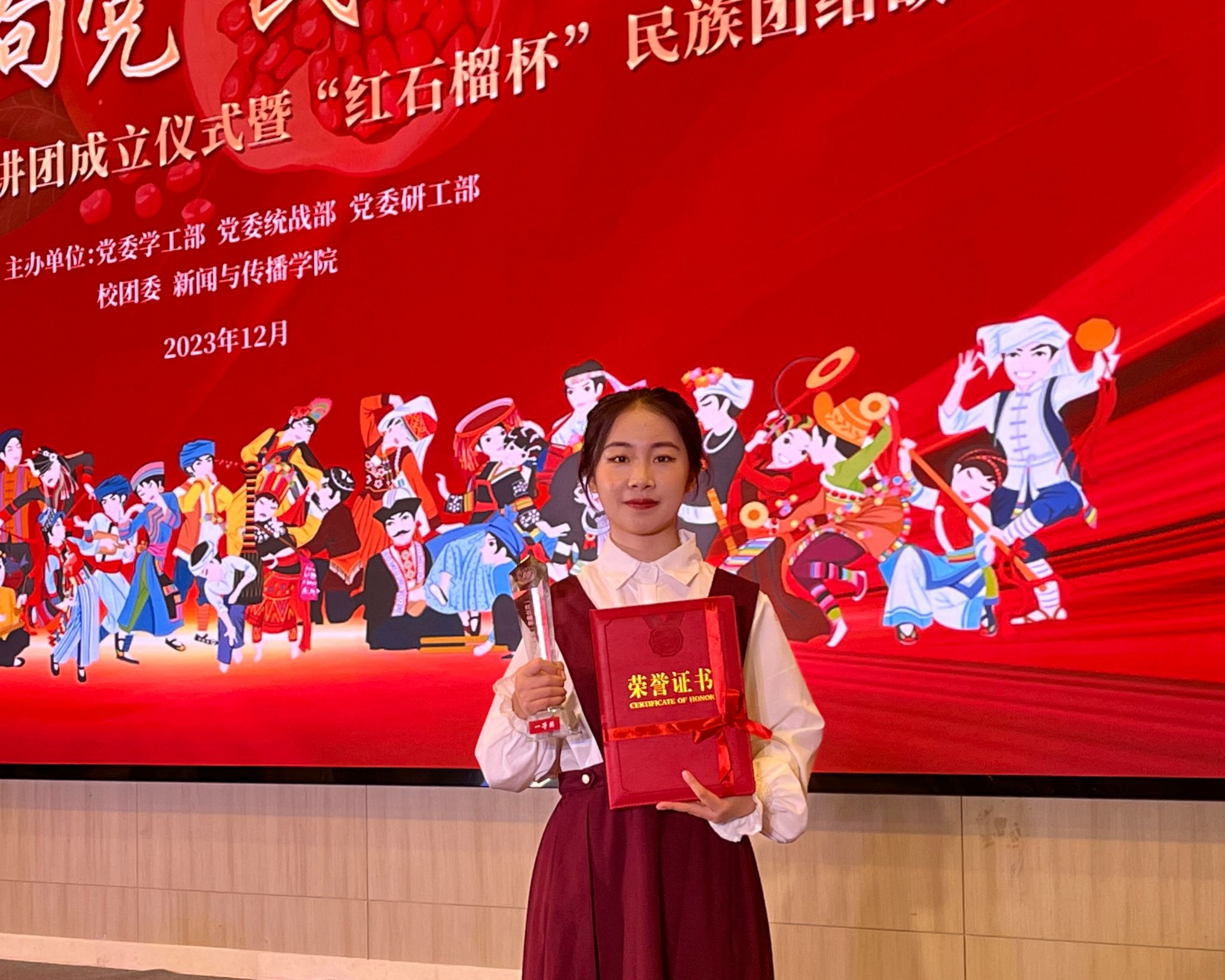 2022级汉语言文学专业马思贤同学获“红石榴杯”演讲比赛一等奖。她的演讲《国境线上的格桑花》为我们娓娓道来西藏自治区山南市隆子县玉麦乡桑杰曲巴一家几十年如一日守护祖国边陲并促进家乡发展的故事,并发出未来走上边疆地区讲台,为西部教育事业无私奉献、奋斗终身的号召,响应了“民族团结,共同筑梦”的时代主题。