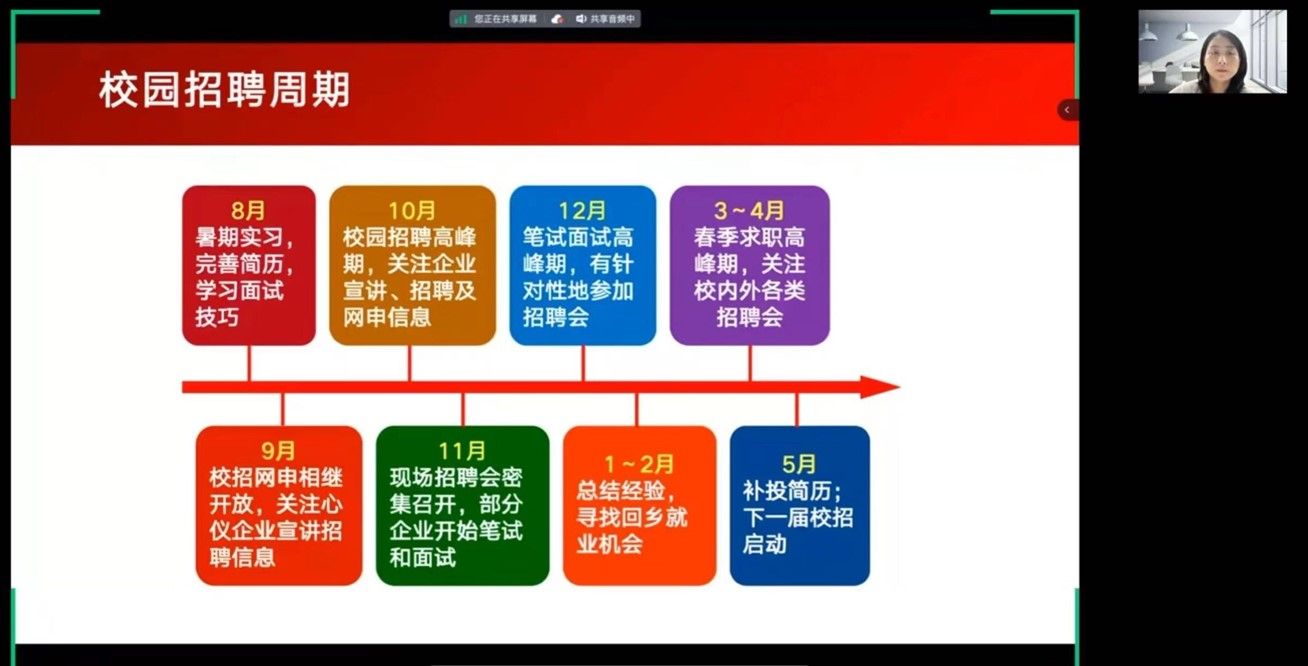 (通讯员:陈立晨)7月6日上午,学院主办的2025届研究生就业培训讲座“精准定位 高效求职——如何有效找到心仪工作”于云端开讲。讲座由学校学生职业生涯发展教育教研室副主任张蕾主讲,研究生辅导员黄博阳主持。