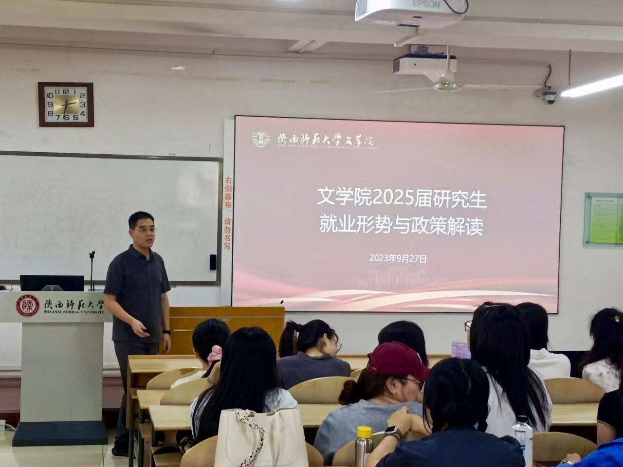 同学们认真聆听,并积极提问,讲座现场气氛热烈。此次就业形势与政策解读帮助同学们更加深入地理解了就业政策,为大家后续办理就业手续提供了明确的操作指导。本次活动是bevictor伟德官网针对研究生就业工作开展的培训之一,bevictor伟德官网将继续举办相关讲座及就业辅导活动,帮助同学们顺利迈出职场第一步。