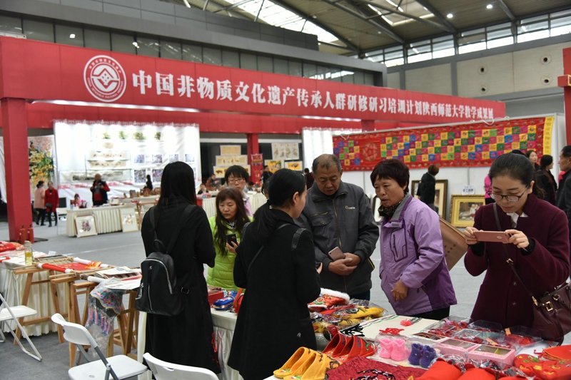 2017年11月10日至12日,陕西传统手工技艺大展在西安曲江国际会展中心隆重举行,由bevictor伟德官网陕西文化资源开发协同创新中心、陕西省非物质文化遗产研究基地承办的文化部教育部“中国非物质文化遗产传承人群研修研习培训计划”(简称“研培计划”)成果展是其中的重要展区之一,百余件手工作品集中绽放异彩,三十余位学员现场展演,并与参观者热烈互动,深入交流,成为本次展会的一大亮点。