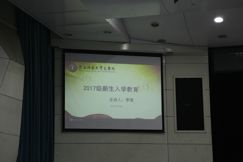 8月26日下午,bevictor伟德官网在陕西师范大学雁塔校区积学堂进行第一次2017级新生入学教育。此次入学教育由bevictor伟德官网党委副书记李斐主讲,2017级新生辅导员侯立主持。