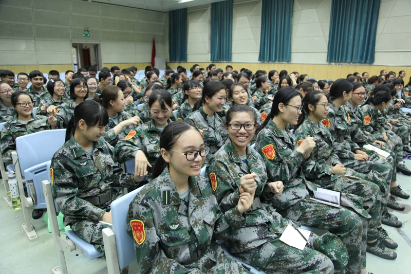 秋雨潇潇,金风瑟瑟,然而却没能阻挡住同学们认真接受教育的热情。在讲座中,胡教授看到同学们身着军装,不禁回想起当年自己在新疆生产建设兵团里参加劳动与学习的经历。他坦言,现在的学习环境与过去相比有很大改善,希望同学们能够珍惜当前的优越条件,争取毕业后能够有所成就。