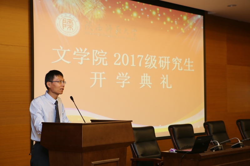 院长张新科教授首先致辞。他对各位新生表达了热烈的欢迎和祝贺,并介绍了学院的学科建设等基本情况,并结合自己培养研究生的经历,向新生提出了期望和要求:一是要立德立人,培养团队协作精神,懂得感恩,自强自立;二是要求真创新,从学术志向、学术视野、学术方法、学术道德、学术规范5个方面,激励同学们在开展学术研究时应做到眼学、耳学、口学、脚学、心学相结合,勤勉不怠,攀登学术高峰;三是要身心健康,培养良好生活习惯,积极锻炼身体,注重心理健康。同时,他希望导师们增强责任感和使命感,不仅要引导学生做学问,更要引导学生学做人,为社会培养有用的高规格人才。