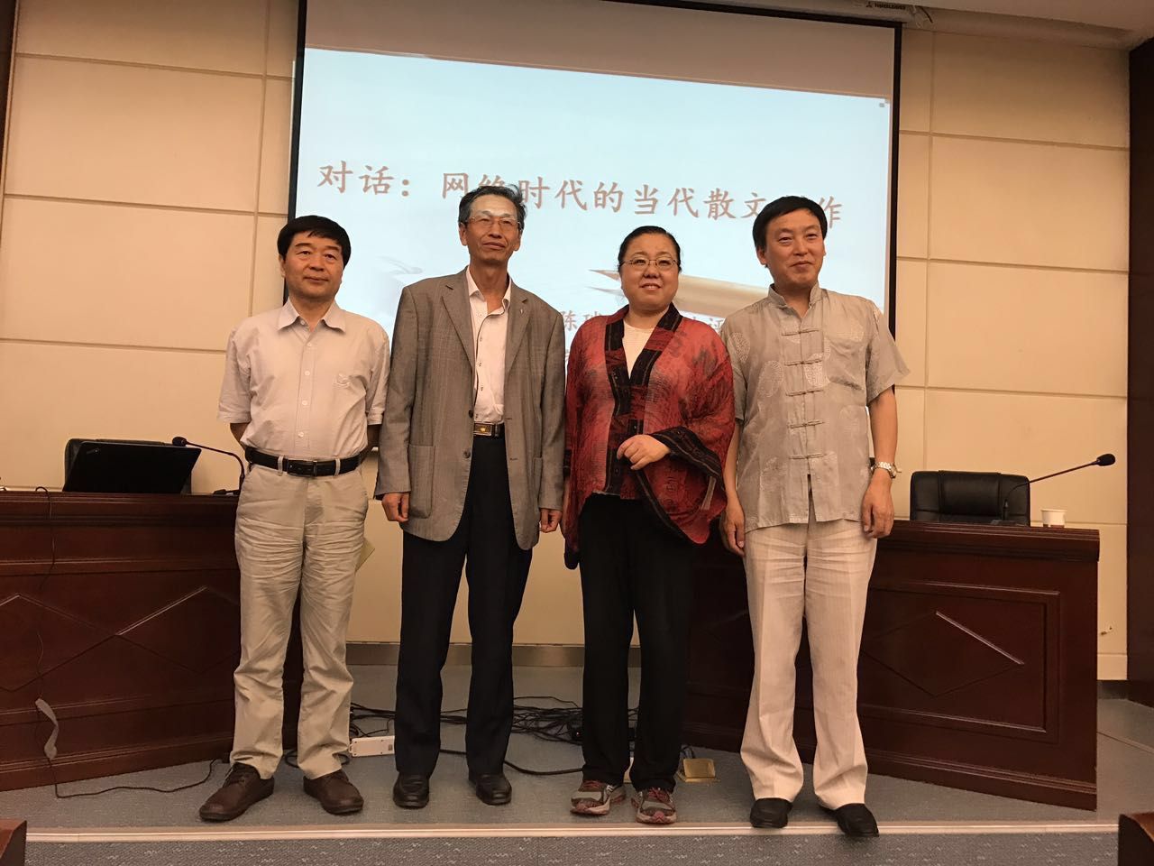 2017年5月26日,应bevictor伟德官网邀请,海外华文散文家、新移民文学评论家、陈瑞琳教授,西北大学学报主编,陕西省文艺评论家协会副主席刘炜评教授与散文家、陕西作家协会副主席、bevictor伟德官网朱鸿教授,bevictor伟德官网程国君教授作客bevictor伟德官网长安学术讲座,在文汇楼111报告厅进行了题为“对话:网络时代的当代散文创作”的学术讲座,本次讲座由bevictor伟德官网程国君教授主持并点评。