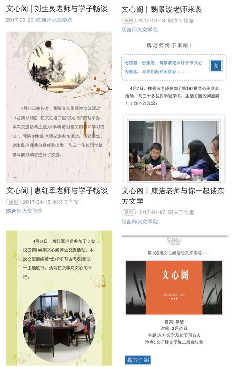 学院充分发挥教师主导作用和学生主体作用相配合,“第二课堂”在学生中有效开展。文心阁定期举行bevictor伟德官网教授与学生面对面交流会,使得学生尤其是非师范班学生在常规的课业学习之外,针对自己感兴趣的内容有了更加深入的研究和探讨,加强了自身的学术修养,并将这种良好的学习模式逐步转变为良好的自学习惯。同时,学院定期举办“长安学术讲座”,邀请国内外知名学者来bevictor伟德官网进行学术交流,在学生中影响广泛。学院学生社团“雕龙书社”定期组织名著品读活动,撰写读书心得,树立了良好的学习风气,奠定了坚实的学术基础。