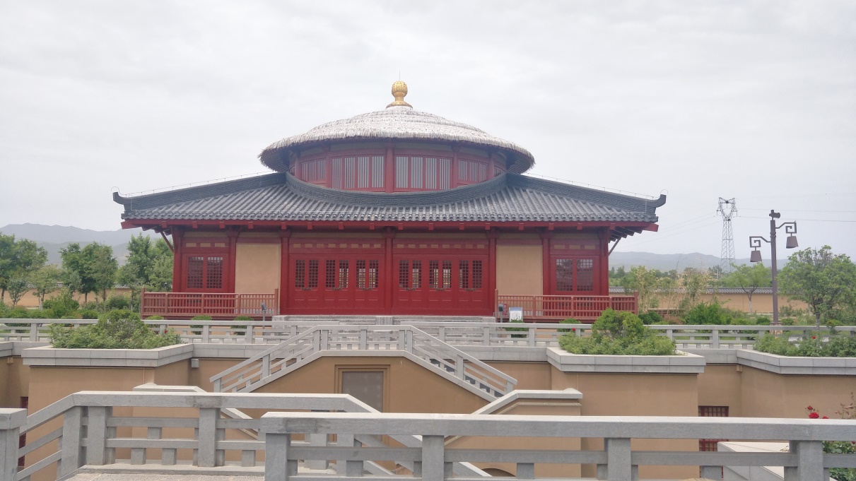 考察的第一站是位于陕西省岐山县的周公庙。周公庙位于陕西省岐山县城西北7.5千米的凤凰山南麓,即《诗经》记载的“凤凰明矣,于彼高岗”处。因周公庙东北西三面环山,所以有“飘风自南”的说法,有利于积财聚气,是一块不可多得的风水宝地。在讲解员的带领下,同学们依次参观了乐楼、八卦亭和周公殿。这里的建筑多为榫卯连接式结构,其巧夺天工的建筑艺术,殿内精美的壁画作品在展现古人智慧的同时,也蕴含着诸如“祸福相依”等意味深长的哲理,予以同学们深刻启迪。