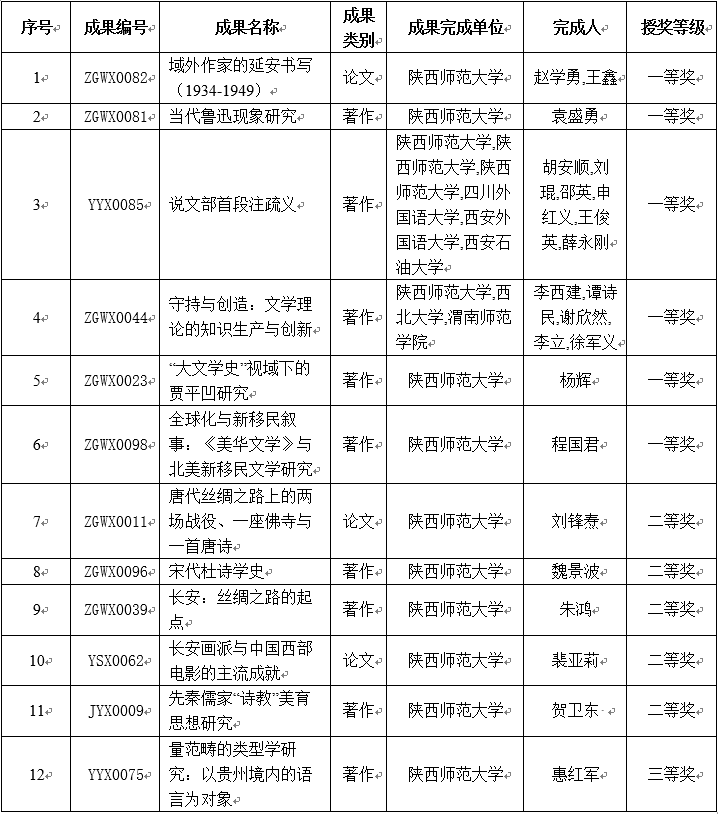 (通讯员:魏姗姗)近日,陕西省教育厅公布了2019年度陕西高等学校人文社会科学研究优秀成果奖授奖项目,共奖励科研成果519项,其中一等奖98项,二等奖155项,三等奖259项。bevictor伟德官网主持申报的12项科研成果获奖,其中一等奖6项,二等奖5项,三等奖1项。