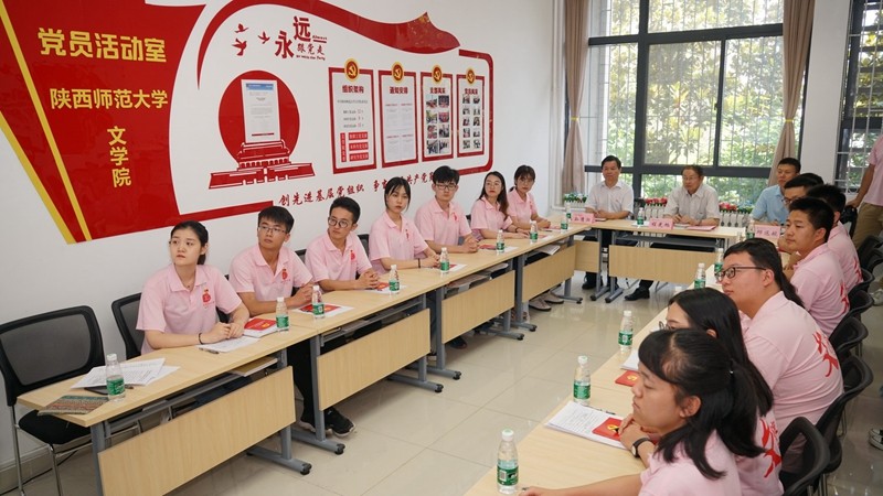 三是要勇立时代潮头,志存高远。程光旭指出,我们党伟大之处就在于永远站在时代的前列,与中国人民同呼吸共命运。进入新时代,我们党的奋斗目标是实现中华民族伟大复兴的中国梦,具体来讲就是实现“两个一百年”奋斗目标。作为党员,要立大志做大事,特别学文学的同学,一定要树立文化自信,要作话语体系的创造者,要作优秀中华传统文化传播者,要主动作为,推动作中国特色社会主义文化繁荣昌盛;要有坚定的理想信念,高远的志向追求,扎实的专业基础,努力成长为名师和教育家,为实现“两个一百年”奋斗目标贡献自己的力量。