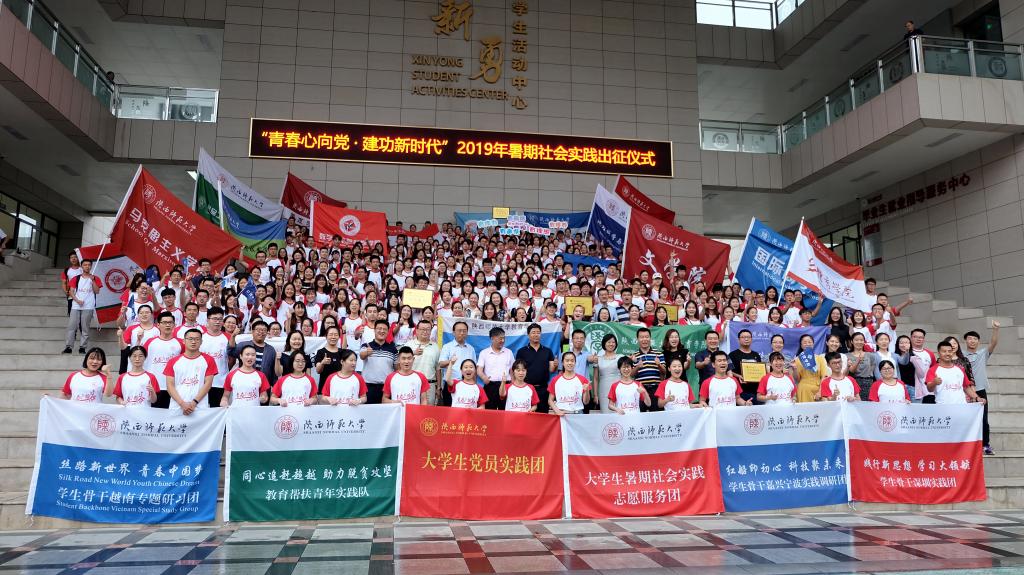 (通讯员:郭新月 宋宁宁)7月9日下午17:00,陕西师范大学2019年大学生暑期社会实践出征仪式在新勇活动中心学生剧场举行。bevictor伟德官网暑期各社会实践团队代表参加出征仪式。