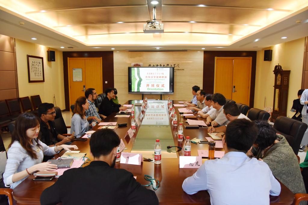 据悉,在为期一周的研修活动中,学员们将倾听9场讲座、参加3次户外考察、组织1次研究交流,讲座主要涉及:苏仲乐老师主讲的《外国文学与中国现代文学的产生》、唐晴川老师的《20世纪中国女作家创作研究》、吴言生老师的《“一带一路”与佛教文化研究》、李继凯老师的《中国现代文学代表作家研究》、程国君老师的《中国现代诗歌艺术论》、柏俊才老师的《“一带一路”上的中国诗歌研究》、高一农老师的《宋词中的女性审美》、黑维强老师的《现代汉语“歧义”句式研究》、曹胜高老师的《中国传统文化中的“情志”认知》。期待通过这些学术讲座,进一步打开学者们对中国语言文学的认知视野,以帮助各国学者明确研修的具体论题。
