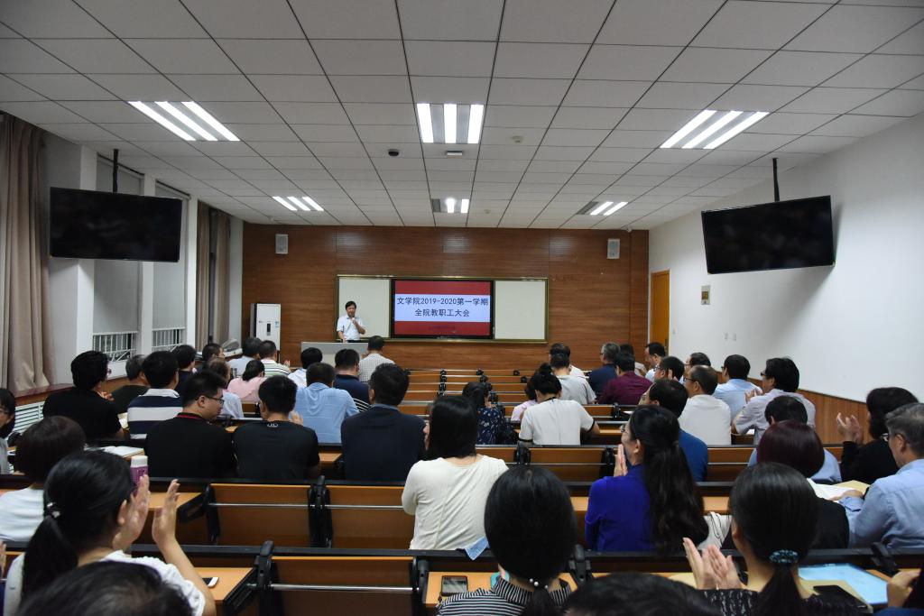 孙清潮首先传达了学校新学期工作部署会上的相关精神,重点解读了校党委书记程光旭讲话中的“五个要求”和校长游旭群讲话中的"一条主线""五个方面"“十个聚力”。随后,他对上学期bevictor伟德官网取得成绩进行了总结,对暑期和开学以来的具体工作进行了回顾,并对本学期学院工作作了详细安排。他指出,今年是落实全国教育大会精神和学校第十一次党代会精神的开局之年,是推进“双一流”建设的关键之年,更是学校内涵发展、奋力追赶的紧要之年。希望全院教职工,提高政治站位,坚持立德树人,扎实开展“不忘初心、牢记使命”主题教育,努力提高人才培养质量,认真做好第五轮学科评估准备工作,为实现中国语言文学世界一流学科建设目标而努力奋斗。