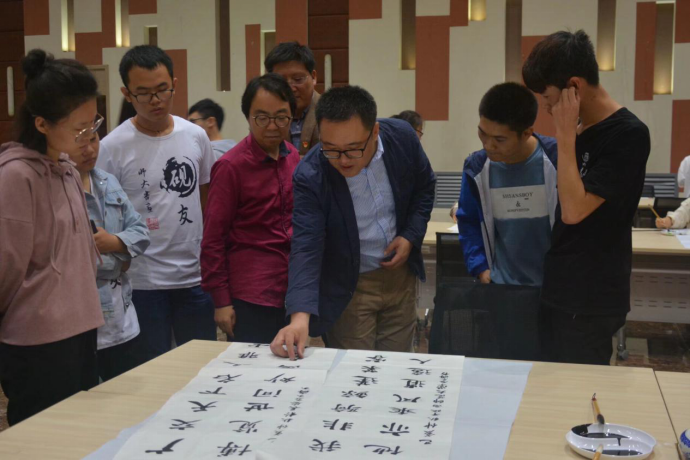 颁奖典礼结束之后,老师们和获奖学生共同参与了笔会,大家挥毫泼墨,切磋书艺,同学们热情高涨,现场气氛十分活跃。