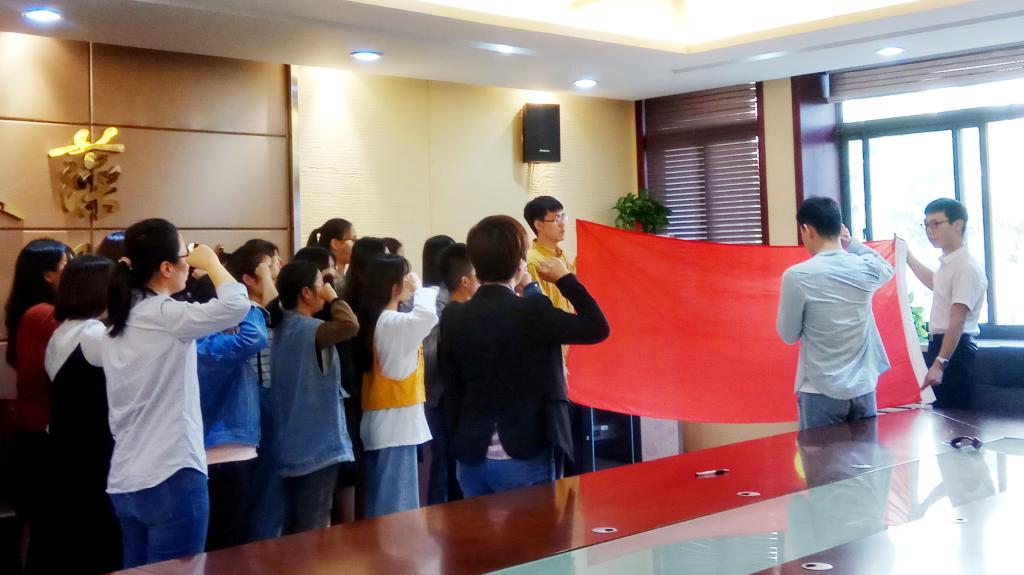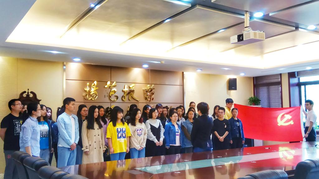 研究生预备党员冯茂桐带领大家面对党旗郑重宣誓:“我志愿加入中国共产党,拥护党的纲领,遵守党的章程,履行党员义务,执行党的决定,严守党的纪律,保守党的秘密,对党忠诚,积极工作,为共产主义奋斗终身,随时准备为党和人民牺牲一切,永不叛党。”