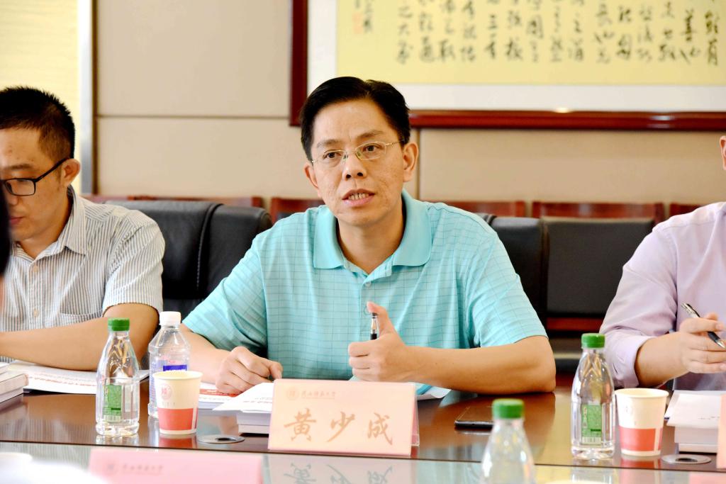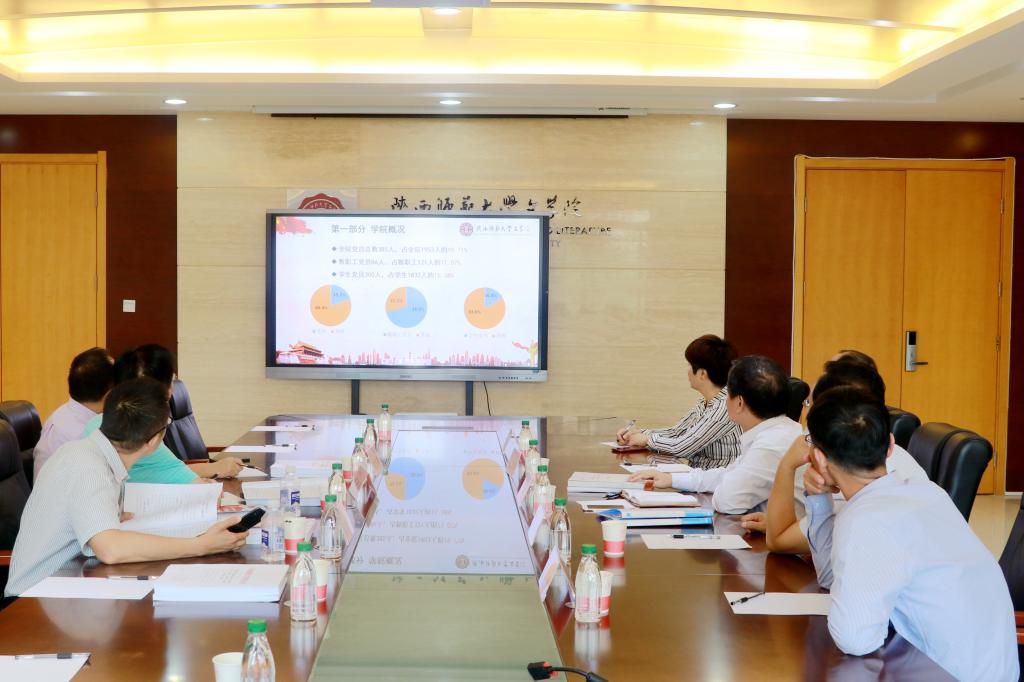 黄少成、孟凡东参观了bevictor伟德官网党员活动室、心理活动室、文心阁、墨宝室和学院文化墙,对学院相关工作进行了询问了解,随后在215会议室召开了座谈会。会上,孙清潮书记就学院“不忘初心、牢记使命”主题教育开展、全国党建标杆院系建设、“课程思政”推进以及目前存在主要问题等向第九巡回指导组成员做了汇报。