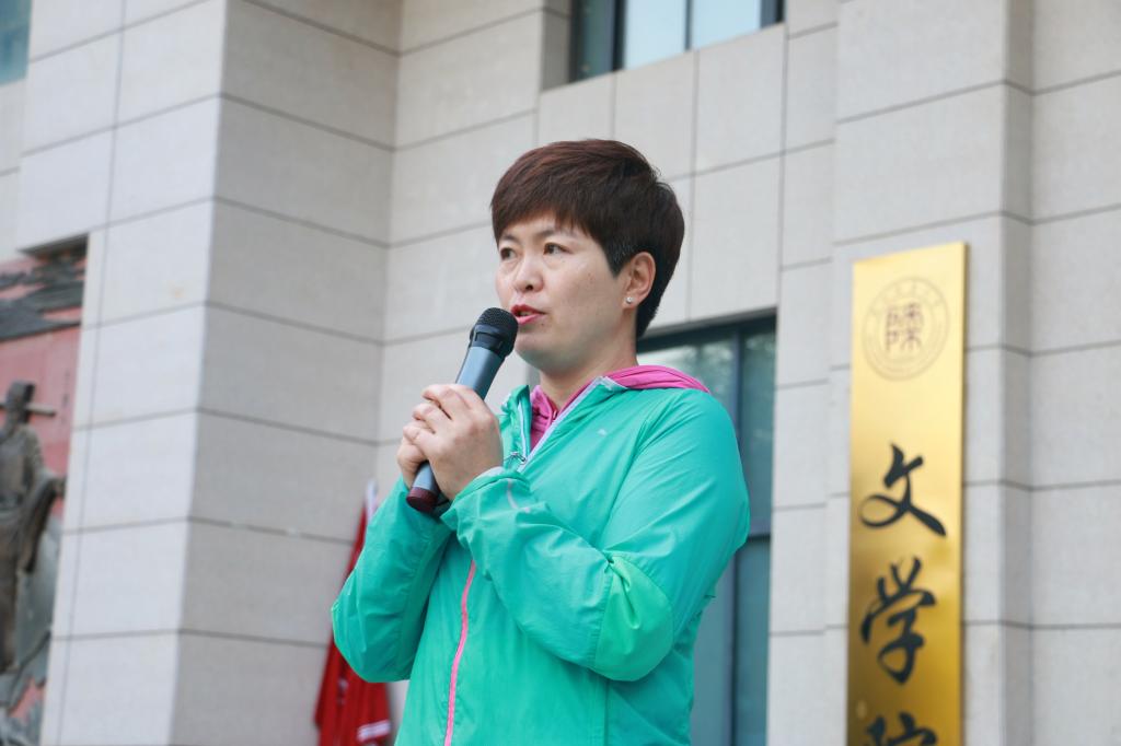 李斐老师致开幕词。她表示,同学们手中鲜艳的五星红旗承载着文苑学子表白祖国的热情,飘扬着青年一代报效祖国的赤心,希望大家跑出风采、动出乐趣,彰显bevictor伟德官网的青春活力,礼赞新中国七十华诞。
