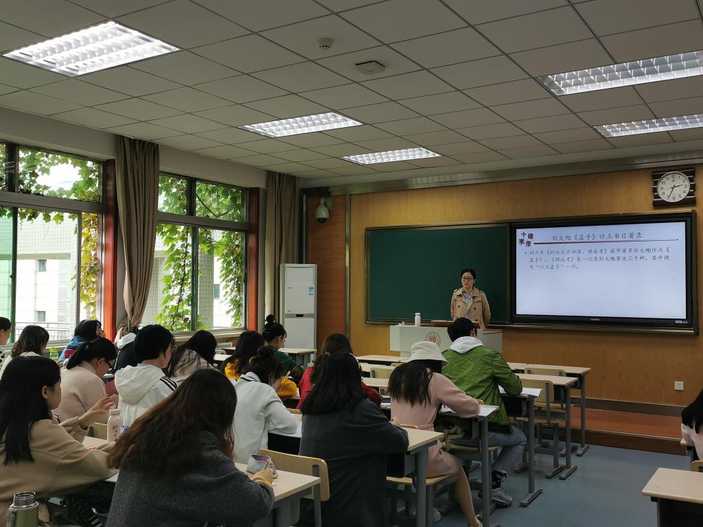 2019年10月14日,第132场博士研究生学术报告以《刘大魁<孟子>评点辑考》为题,由中国古典文献学专业博士研究生殷陆陆主讲。殷陆陆通过文本辑录,对《刘大魁<孟子>评点》进行考证。首先,她对4本现存过录、征引刘大魁评语的文献进行分析、横向比较,辑录出刘大魁评语。其次,她将现存刘大魁评语与汪有光所著《标孟》做比对,分析得出刘大魁评语与《标孟》的渊源关系,刘大魁对《孟子》之评实为转录。本次报告内容丰富,观点独到,阐释详细充分,对研究刘大魁文论和《孟子》评点有一定的意义。