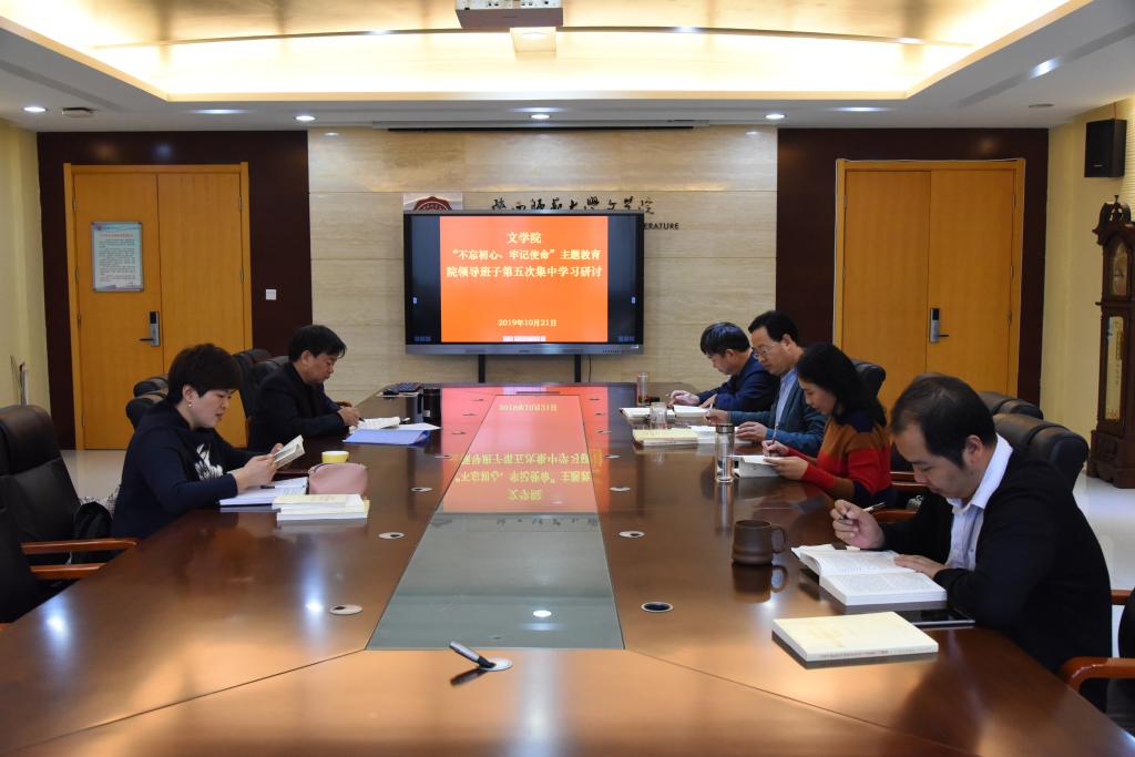 院班子成员集体观看了习近平在庆祝中华人民共和国成立七十周年大会上重要讲话视频、习近平在全国民族团结进步表彰大会上讲话视频。李斐副书记和苏仲乐副院长分别领读了《习近平关于“不忘初心、牢记使命”重要论述选编》中“习近平在庆祝改革开放四十周年大会上的讲话”全文。班子成员围绕主题进行了讨论交流。