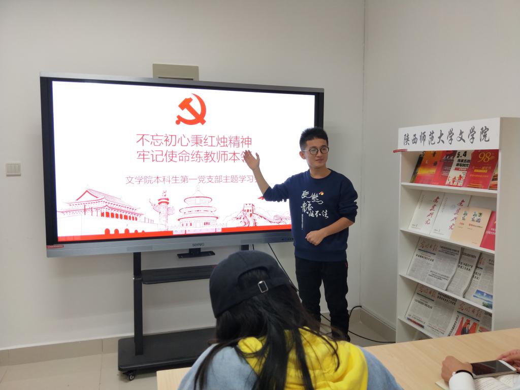 随后,支部成员学习了“不忘初心牢记使命”论述摘编,领会讲话精神;观看了专题节目《榜样4》,学习先进模范,汲取榜样力量。预备党员郭瑞芝同志表示,作为一名预备党员,作为一名国家公费师范生,我的初心和使命与红烛精神紧紧结合在一起。我今后一定扎根西部,甘于奉献,追求卓越,教育报国,走好今天的长征路。