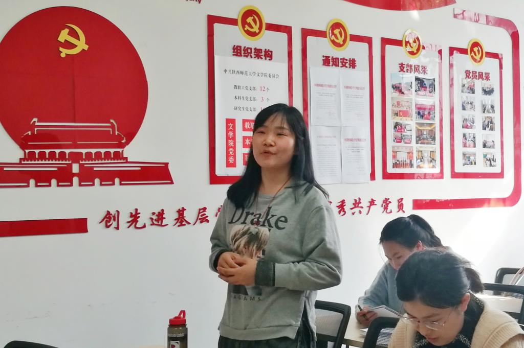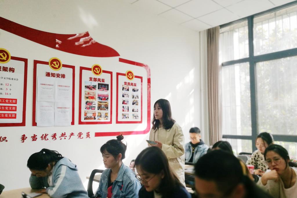 随后,李斐副书记就学生党支部主题教育情况提出了四点要求。一是要提高政治站位,增强学习的政治意识。要从人生观、政治观层面去认识和理解主题教育的重要意义,真正使主题教育入脑入心。二是要积极创新学习形式,丰富学习内容。李斐老师鼓励大家要多学多看,拓宽视野、增长见识,更多地了解祖国发展,关心关注学校学院发展。三是对照典型,认真学习。要通过观看《榜样》系列节目,学习为国家奉献的先进人物;要向学院优秀的老师和同学学习,向优秀的校友学习,以先进典型为榜样,以更大地信心和动力去好好学习,做出成绩。四是要突出重点,结合实际。李斐老师强调学生支部的主题教育一定要突出政治学习,要发扬马克思主义学风,要结合专业实际,但不能以专业学习代替主题教育学习。