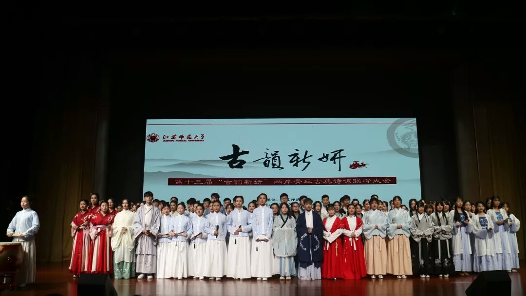 “古韵新妍——两岸青年古典诗词联吟大会”始于2007年,由台湾辅仁大学孙永忠教授等发起。随即辅仁大学联合北京师范大学、江苏师范大学等共同创办第一届古典诗词联吟活动,一首《蓼莪》更是引起两岸各大高校大学生的强烈共鸣。随着活动影响力不断扩大,越来越多的两岸高校关注并加入到传承中华优秀传统文化的行列中来,轮流举办“古韵新妍”联吟大会。“古韵新妍”不仅是两岸高校诗词吟诵社团交流的平台,也是各高校友好交往的见证,更是两岸情谊赓续不断的见证。2019年10月,各诗社又齐聚江苏徐州,颂古风,吟古调,探寻诗词之美,共同迎接“古韵新妍”的第十三年。