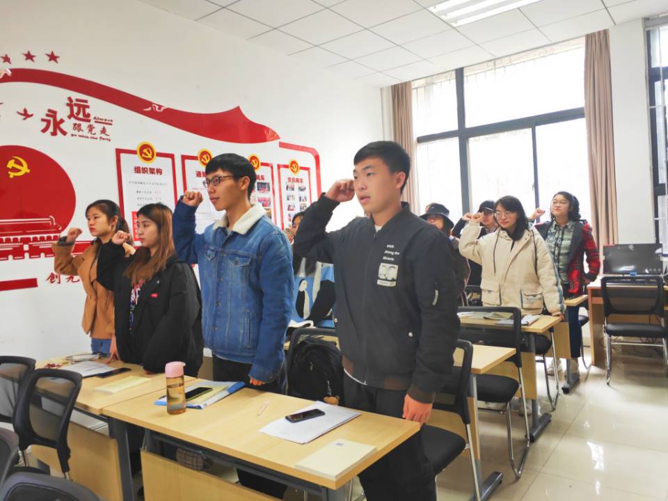 最后,在支部书记马汝琳的带领下,全体党员起立,一起重温了入党誓词,会议在坚定的宣誓声中结束。