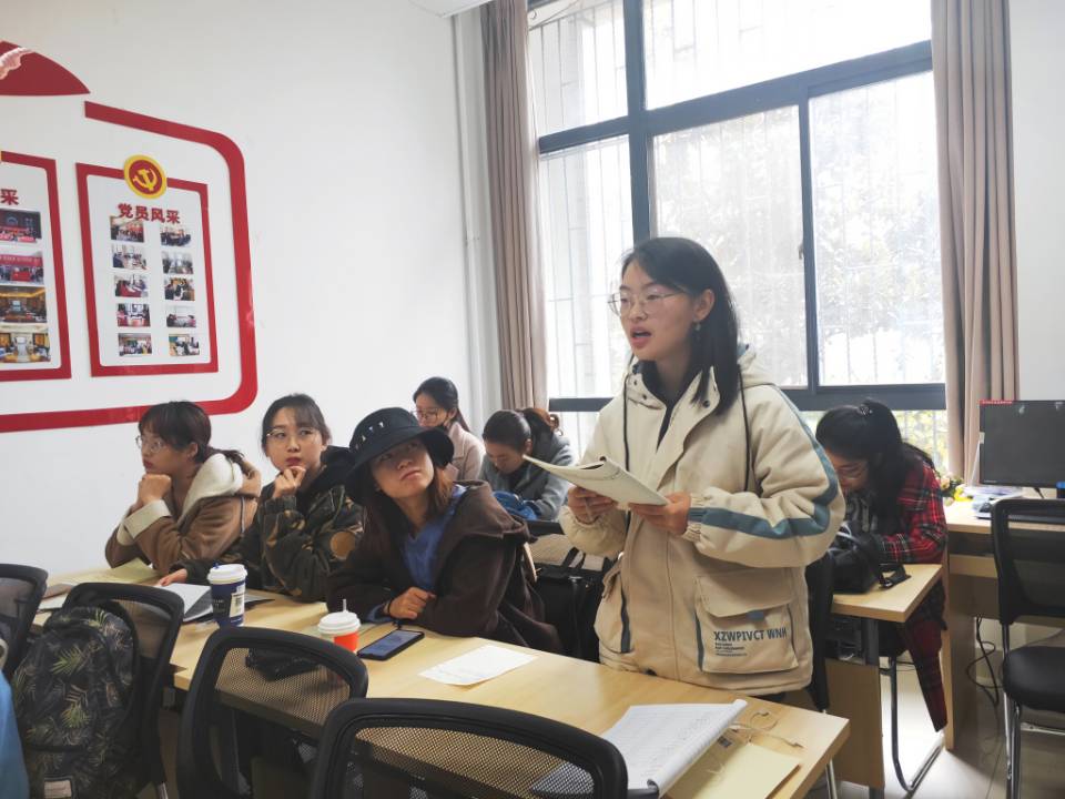 随后,就“如何做”这一点,全体党员展开了热烈的小组讨论。施苾芸同志将实现中华民族伟大复兴必由之路与个体理想信念相结合,陈述了其间的依存关系,她表示,自己要当教师的人生追求在这样的时代大背景下承载着更多的使命和责任。王楠同志强调了走中国特色社会主义发展道路的重要性,并阐述了习总书记关于道路论述所具有的重要指导意义。姚雪婷同志回顾了新中国建立以来社会主义道路发展的历程,充分肯定了新时代下提出实现中华民族伟大复兴所具有的时代意义,认为每个人都应该为其添砖加瓦,党员同志更应发挥其先锋模范作用。文桃戈同志从理论角度强调了理论对于发展的指导意义,以及中国共产党理论指导思想与时俱进的必要性,她认为理论必须与实践相结合才体现其指导性,如社会主义核心价值观凝练的三句二十四字,不应当只是口号,更应该被每个人实实在在地践行。商梦圆同志认为不忘初心的问题要归结到人民群众身上,经得起群众检验才是真,时刻不能忘记中国共产党的宗旨是全心全意为人民服务。