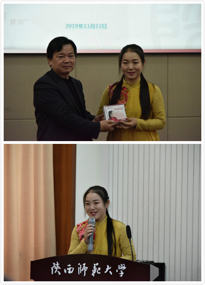 同时,结业仪式上还举行了陕西师范大学非遗“研培计划”首位就业创业优秀学员微视频发布仪式。微视频以《妙手莲花》为总片名,今天发布的首位优秀学员的微视频片名为《剪纸姑娘陈莲莲》,以第三期研培班(剪纸)学员陈莲莲自叙的方式,介绍了她创新创业并带动周围人就业的典型事例,影片主题歌也由陈莲莲自己演唱。陈莲莲在发言中感谢陕西师范大学的鼎力扶持,表示将继续传承和发扬中国优秀传统文化,在就业创业的征途上,走得更快、更远。