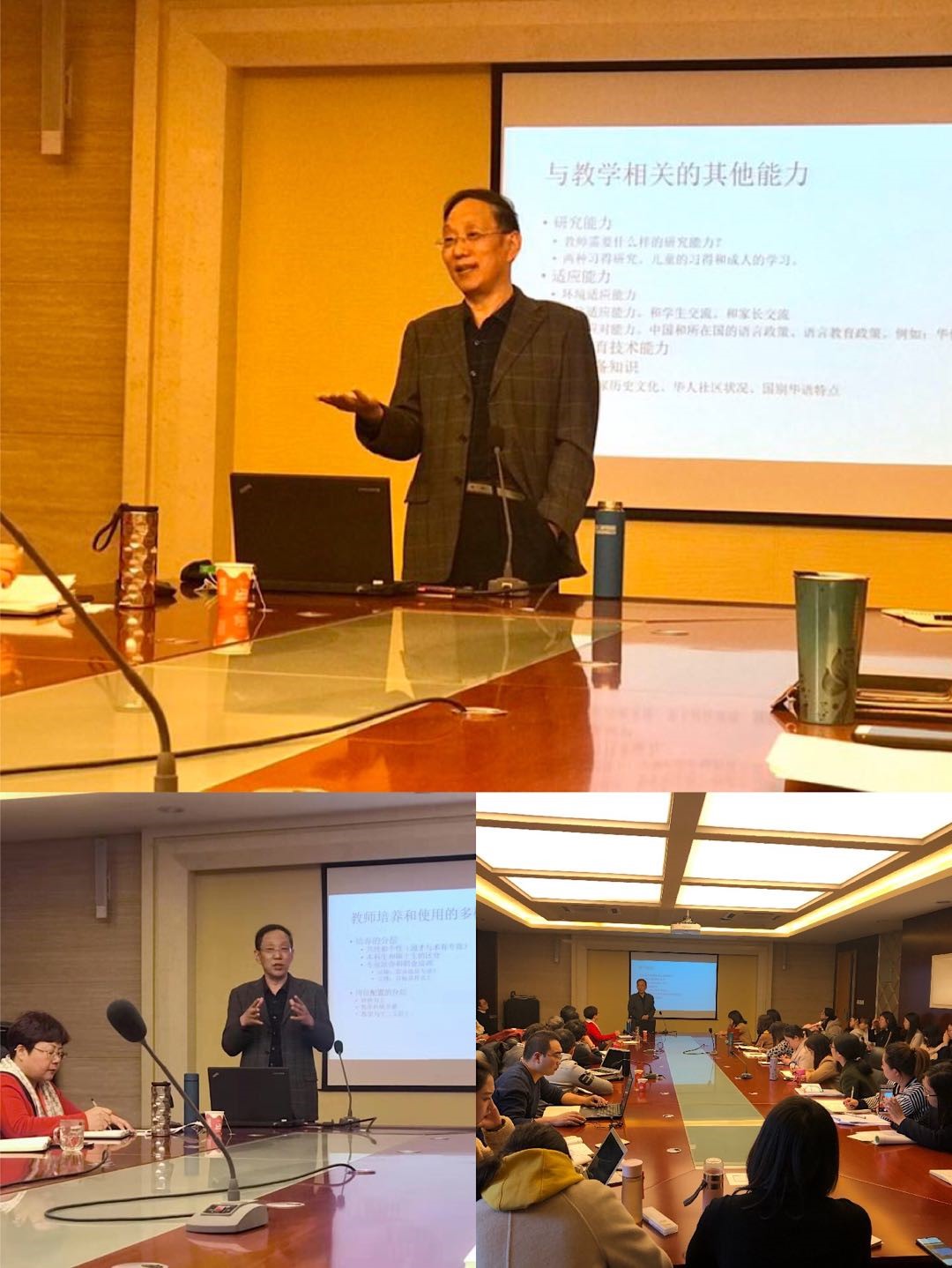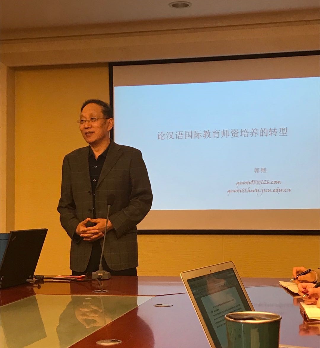 其次,郭教授指出在新形势下,培养适应时代的汉语教师是汉语国际教学的重要任务。未来的汉语教师应该具有适应时代的语言教育理念、足够的应变能力、良好的语言能力、语言知识和语言技术、灵活多样的教学方法和脚踏实地的“教书匠”精神。然而目前我国对汉语国际教育本科和硕士的培养方法,很难达到这一标准。因此,郭教授认为未来培养语言教师时应该注意:教师培养目标多样化,培养要分层,要将共性培养和个性培养,本科生和硕士生、专业培养和职业培训、汉硕和专博加以区分;对专业知识要有再认识,不同学习者掌握的专业知识不同,比如说成人二语习得者必须掌握的语法教学内容不一定适合学龄学习者;教师既有承担多种类型教学任务的能力、也有选择运用教材、因材施教、管理课堂等多种能力。