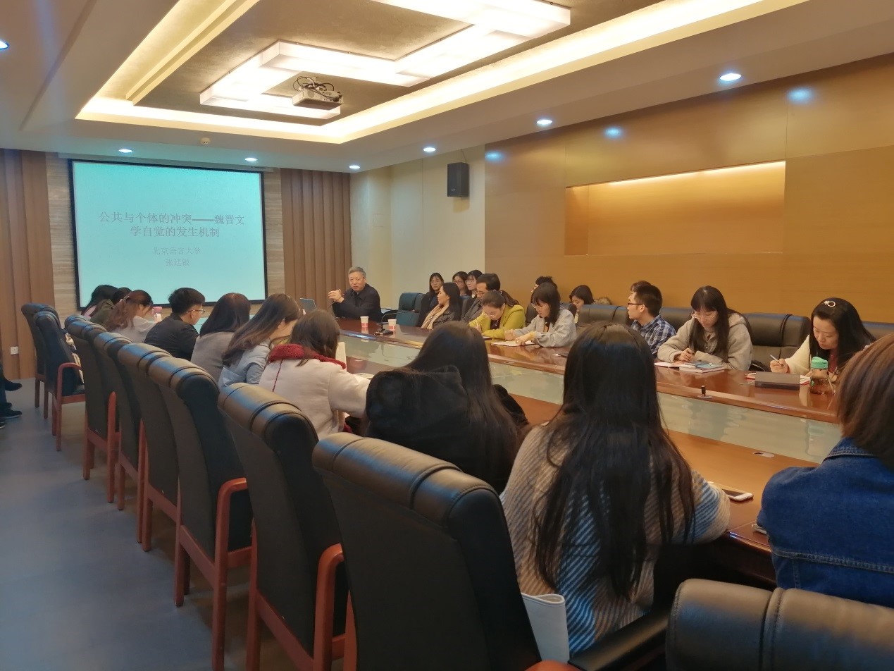 (通讯员:文苑)11月21日下午16:30,bevictor伟德官网第387期长安学术讲座在文汇楼C段5层524会议室举行。北京语言大学教授,博士生导师,国家社科基金重大课题“历代方志所见文学文献整理研究”首席专家张廷银作了题为《公共与个体的冲突——魏骨文学自觉的生成机制》的讲座。本次讲座由bevictor伟德官网王晓鹃教授主持,王伟教授点评,bevictor伟德官网中国古代文学、中国古典文献学专业的研究生聆听了讲座。