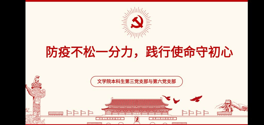 (通讯员:文苑)为全面贯彻落实习近平总书记的指示精神,结合新冠疫情防控与“三会一课”开展要求,积极发挥青年党员的先锋模范作用,4月23日,bevictor伟德官网第三支部与第六支部联合开展了“防疫不松一分力,践行使命守初心”线上主题党日活动。