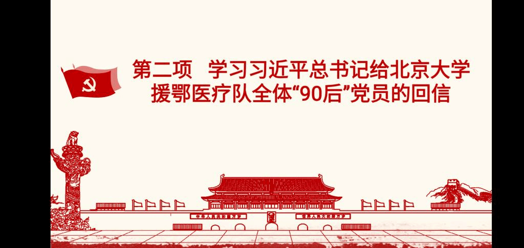 之后,支部成员们一同学习了《习近平总书记给北京大学援鄂医疗队“90后”党员的回信》。马嘉宏同志结合亲身经历主动与支部成员分享了他在阅读到这封信后感恩激动、踌躇满怀的心情。文桃戈同志表达对回信的感慨,表达了对前往一线奋战的青年党员的羡慕与敬佩。刘天怡同志、樊琪源同志和沈建英同志也结合个人生活体会与政策学习体悟表达了提升自我,学习榜样,时刻准备投身国家建设,践行初心勇担使命的决心。