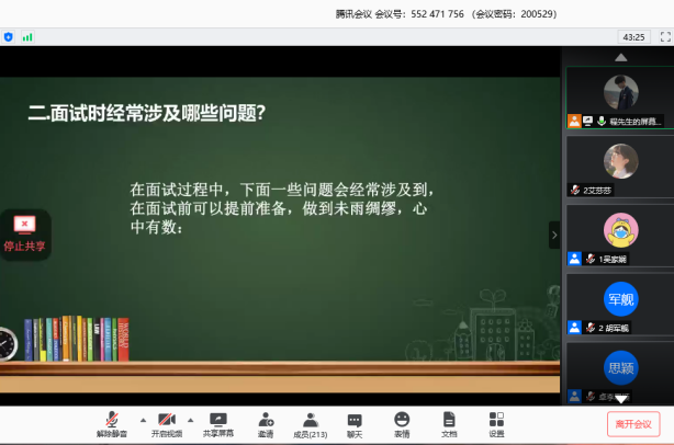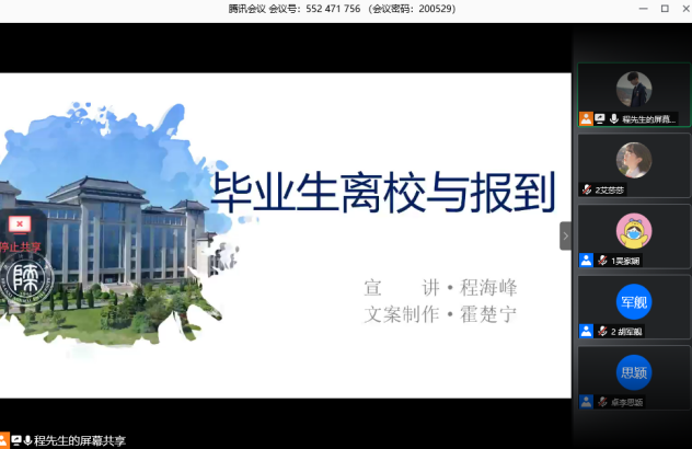 6月3日下午3点,我院2017级就业创业指导课第五期课程在腾讯会议平台开展,学院党委副书记李斐老师主持并宣讲,邀请我校就业指导服务中心高霏老师为同学们答疑解惑。李斐老师结合多年学生就业工作经验和当前的社会供需关系,分析了大学生的就业形势,希望同学们结合自身实际情况,找准目标,灵活就业,努力实现人生价值,对违约、改派等关键问题,希望同学们慎重选择,秉持诚信就业的意识。高霏老师从往年学校就业情况,结合现实案例,生动详细解答了大学生就业创业的相关问题,为同学们提供了宝贵的建议和经验,她鼓励大家坚定信心,锻炼自身本领,做好就业创业准备。