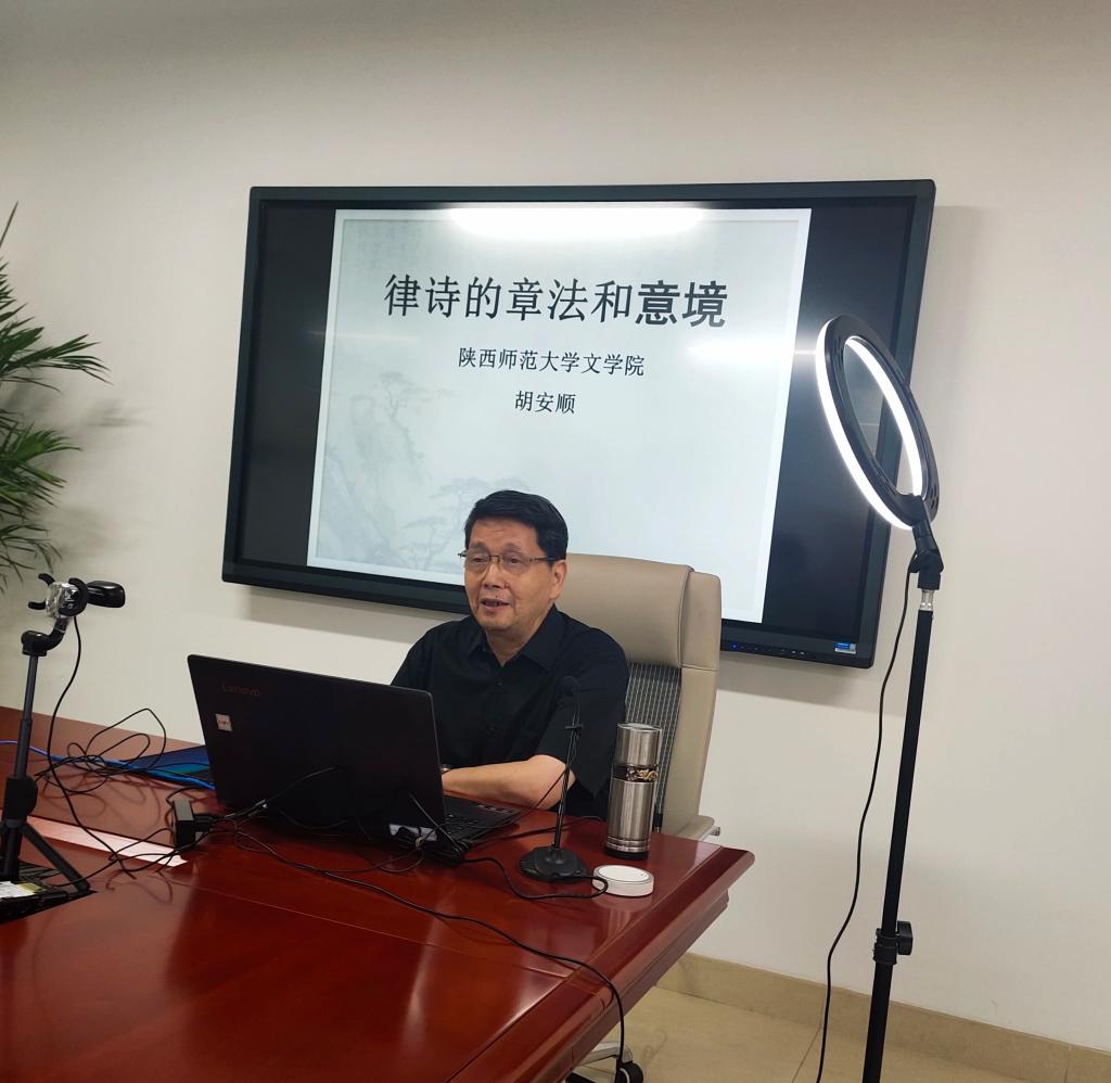 讲座之后,bevictor伟德官网副院长王同亮总结指出,胡安顺教授是陕西省教学名师,兼任国家级教育部人文社科研究项目评审专家等职务,长期从事古代汉语的教学研究工作,擅长诗文创作,本次讲座深情并茂、深入浅出、生动形象,让中学生对格律诗词有了更系统、全面的了解,进一步提高了中学生的诗歌鉴赏能力。胡安顺教授与共和国同龄,已是古稀之年,但仍然坚守在教学、科研的一线,奉献精神令人钦佩。王同亮副院长还对学院的概况进行了简要介绍,他指出bevictor伟德官网有作家群体、书法家群体、评论家群体,下设有诗词曲赋研究中心,同时被陕西省诗词学会批准为“陕西省诗教先进单位与创作研究基地”,是诗词研究、创作的重镇,有一大批的专家学者致力于古典诗词的创作和研究,在中国的学界产生了重要的影响,如陕西省诗词学会的主要创始人和首任的会长——已故的著名学者诗人霍松林先生,他的旧体诗词名扬海内,同时bevictor伟德官网本科生秉承诗词创作的良好传统,结集出版了本科生创作的古典古体诗文作品集,得到社会各界的高度认可。最后,他对中学生表达了期望,希望优秀学子,特别是有志于学习和研究古典诗词、古典文学、古典文字、古典文献的学子,来古都西安,来陕西师范大学求学深造,与bevictor伟德官网名师前辈共话经典,传承文明。