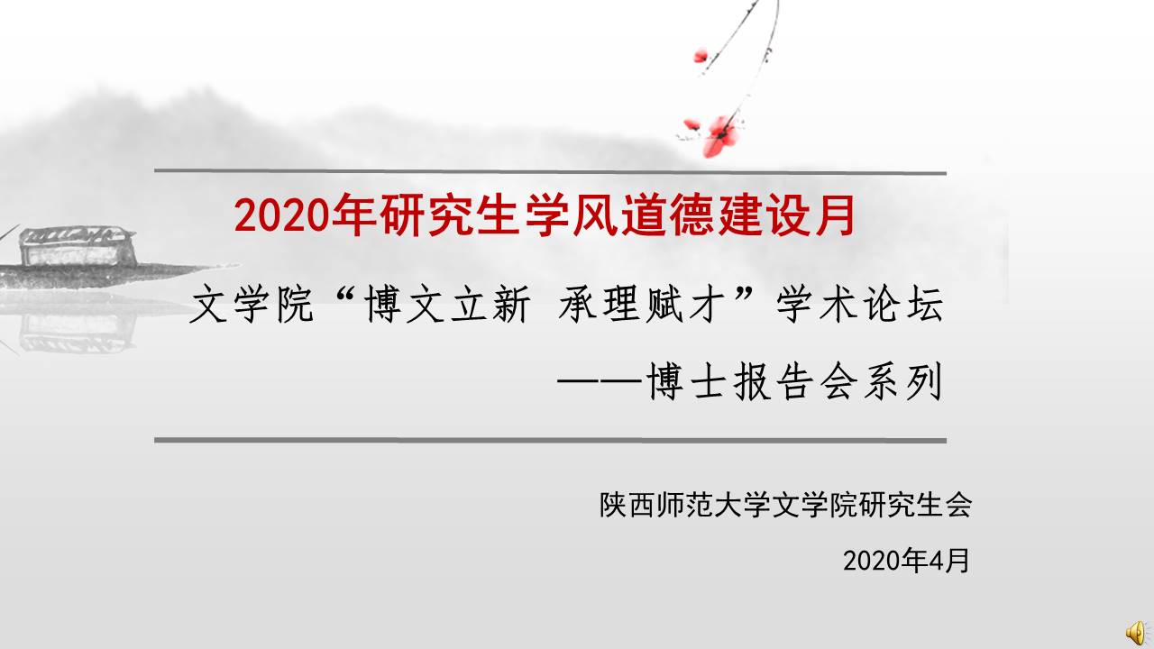 (通讯员:齐琳)2020年5月18日至6月16日,bevictor伟德官网第162场至第169场博士研究生报告线上顺利举行。来自汉语言文字学、中国古代文学、语言学及应用语言学、中国现当代文学的博士研究生通过腾讯会议平台(会议号:216621510、684308225、622749821、154385208、220613290、598981893、198357824、807587350),为同学们带来了精彩的学术报告,bevictor伟德官网各年级不同专业的硕士研究生认真聆听了报告。以下是博士报告的简要内容: