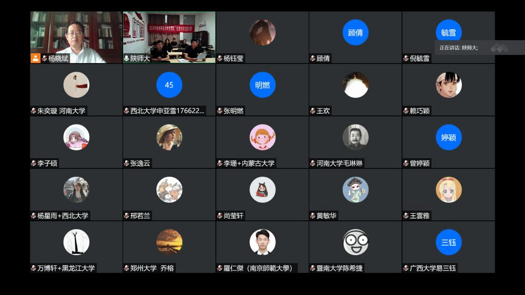 7月17日上午,夏令营开营典礼在线上如期举行,bevictor伟德官网副院长杨晓斌教授、研究生辅导员侯立和优秀研究生代表等出席了开营仪式。开营仪式由研究生辅导员侯立主持。来自中国海洋大学的陈心园同学和来自南京师范大学的罗仁杰同学作为营员代表分别发言,表达了对组织夏令营活动老师同学们的感谢,谈及了选择陕师大的立学初心,展露了对入营生活的美好期待。最后,副院长杨晓斌致辞。他首先对参加夏令营的来自全国各地高校的优秀大学生表示热烈的欢迎,并向夏令营营员介绍了学院的办学历史、学科发展、专业特色,以及bevictor伟德官网中国语言文学“世界一流学科”建设等情况;其次,就bevictor伟德官网研究生就业、国际交流项目及夏令营推免优惠政策等方面向营员们作了简要说明,并为营员们讲述了“十三朝古都”西安的历史文化。最后,他祝愿同学们在此次夏令营活动中能够收获知识和友谊,提升学术研究的兴趣,增强学术交流和学术研究的能力。希望通过大家的共同努力,让此次活动成为每位营员人生旅程中一段美好的记忆。