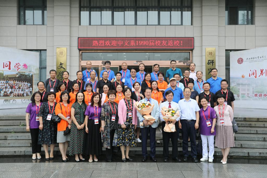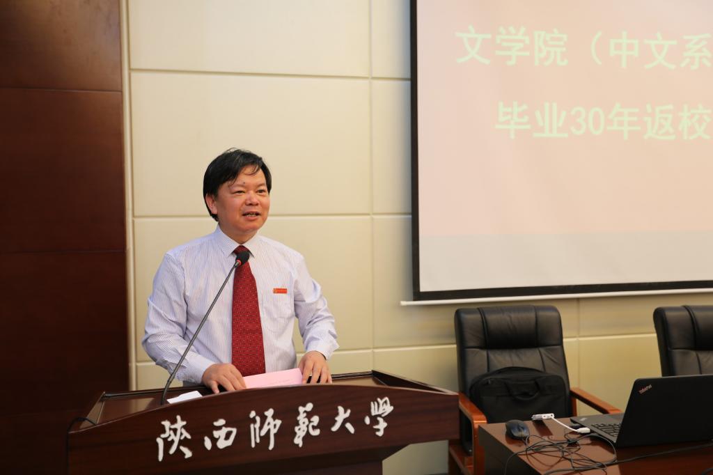 之后,4位校友代表致辞。无论是无悔放弃繁华,扎根戈壁,为见证了中国航天事业的荣光而感动的校友南文生,还是呕心沥血、鞠躬尽瘁,奋战一线不断为祖国育桃李的校友王小红、赵向锋与陈刚,都是师大扎根西部、无私奉献的红烛精神的生动体现。他们感慨母校的变化之大,bevictor伟德官网的发展之快,回顾了三十年前的校园生活。王小红和赵向锋无法到场,通过视频表达了真挚的思念之情。1990届毕业生辅导员李青林老师以“中文,给了咱什么?”为主题进行发言。他深刻阐述了自己对中文、对文学的理解,对bevictor伟德官网培养了关心社会、奉献祖国的毕业生表示自豪。