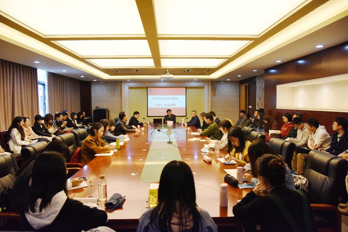 最后,詹教授总结出李白解决精神矛盾的三种途径,其一为著书立说,“屈平词赋悬日月”,李白力图使文字流传于世;其二为在诗文中追求精神解脱,李白的游仙诗、山水诗和饮酒诗体现了他寻求生命解脱的过程,并构成了陶然忘机的审美境界;其三为李白自觉吸收庄子的自然哲学,从中寻找生命的忘我超脱。