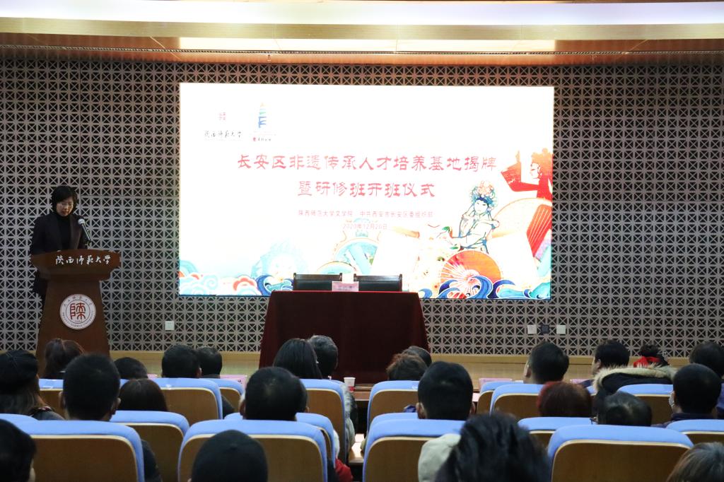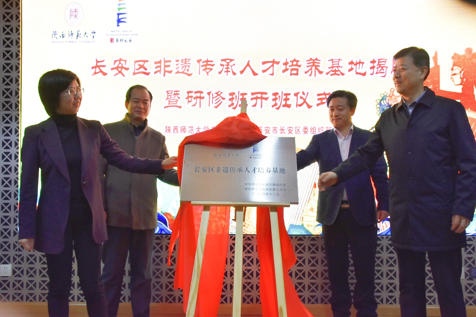 (通讯员:陈丹玉,摄影:杨佳雪、孟菁菁)12月20日上午,长安区非遗传承人才培养基地揭牌暨首期研修班开班仪式在我校长安校区博物馆一层学术报告厅隆重举行。西安市委人才办副主任、市委组织部人才处处长邓攀,市文旅局一级调研员张保荣;长安区委常委、组织部部长王宝金,区文旅局党委书记、局长王楠,长安区王莽街道办党工委书记谢斌,长安区高校协调办主任梅春满;校党委常委、宣传部部长马晓云,组织部部长袁一芳,校团委书记王玉,bevictor伟德官网党委书记、中华优秀传统文化传承基地执行主任孙清潮等出席了揭牌仪式。