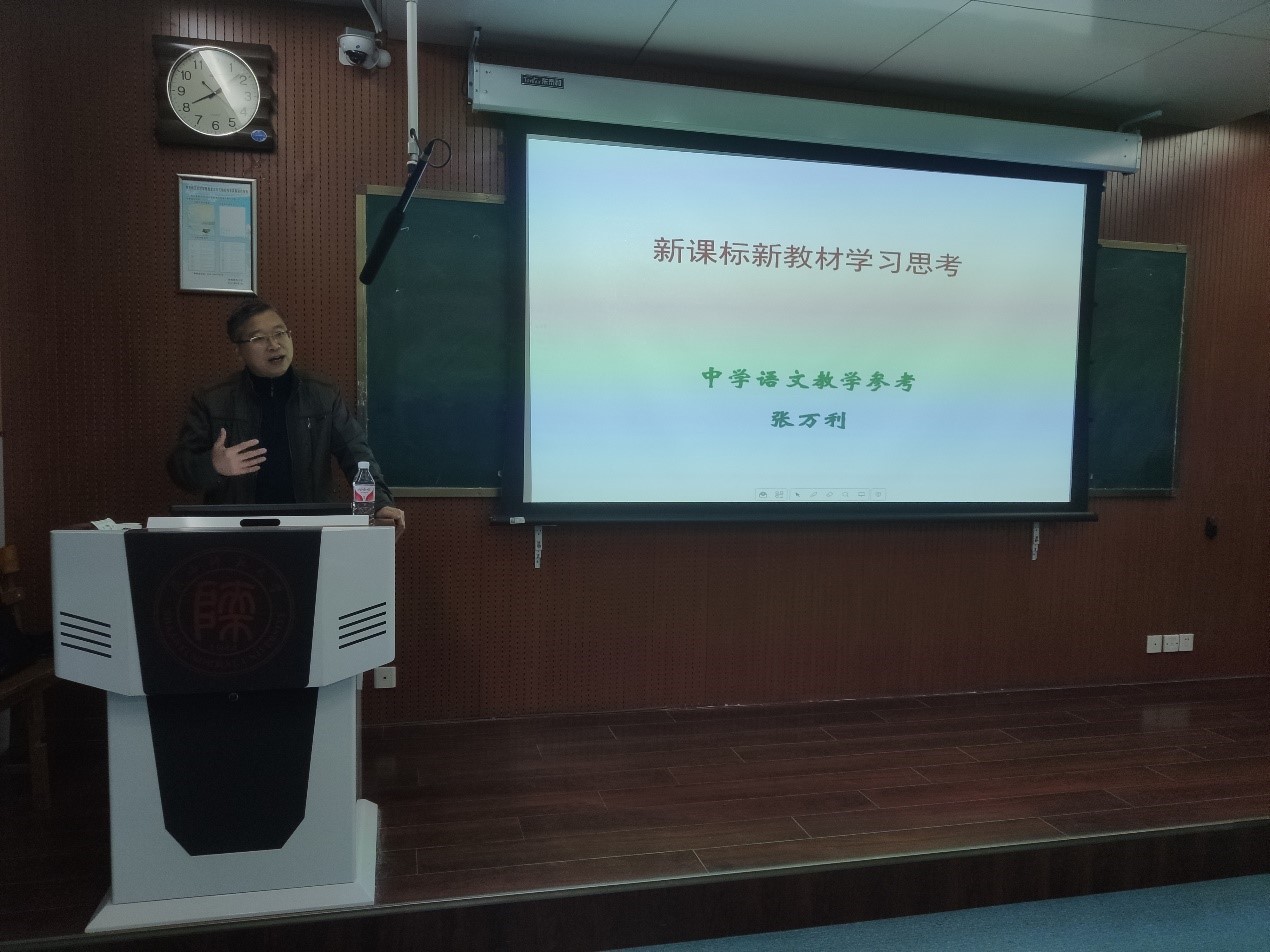 (通讯员:曹佳玥)2021年3月19日上午,《中学语文教学参考》副主编张万利老师为我院2020级汉语言文学卓越班作了“新课标新教材学习思考”的专题讲座。讲座由2020级卓越班项目主任惠红军老师主持,在雁塔校区教学四楼4201室举行。