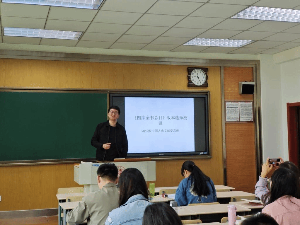 2021年4月27日,第211场博士学术报告以《<四库全书总目>版本选择漫谈》为题,由中国古典文献学专业博士研究生高俊主讲。高俊向同学们介绍了《四库全书》的保存情况、《四库全书总目》的21种版本、浙本《总目》与殿本《总目》两大版本系统关系、今年学术研究的新观点,并且向大家分享了自己的研究经验。高俊指出《四库全书总目》作为古典目录著作的集大成之作,是学术研究的重要参考书籍。但在实用《四库全书总目》时,要对比两大版本系统,做到具体问题具体分析,以防引用不当贻笑大方。报告内容既富学理性又不失趣味,让人受益匪浅。