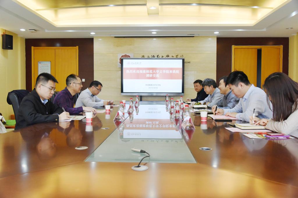 闫文杰首先代表学院对福建师大bevictor伟德官网的来访表示热烈欢迎,并感谢福建师大bevictor伟德官网对bevictor伟德官网中文学科长期以来的关心与支持,接着,闫文杰简要介绍了学院发展历史、专业建设、科研平台、师资队伍、人才培养等方面的情况。苏仲乐重点说明了bevictor伟德官网近年来在学科建设方面取得的成绩与今后努力的方向。李小荣结合福建师大bevictor伟德官网的发展历史与中文学科的相关情况,分享了在人才引进、平台建设、专业建设及社会服务方面的经验,他表示,两校之间渊源颇深、情谊深厚,希望双方继续保持良好的合作关系。