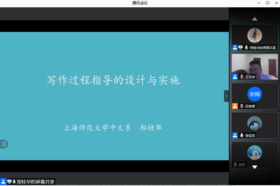 (通讯员:王漩漩)2021年5月14日晚,“教师教育研习·名师讲坛”系列讲座第八场顺利举办。本场讲座特别邀请了上海师范大学中文系教授郑桂华老师主讲,题目为“过程化写作的设计与实施”。本次讲座由bevictor伟德官网副教授李军亮老师主持、bevictor伟德官网教授王元华老师点评,通过腾讯会议线上开展,bevictor伟德官网大三、大四师范生聆听了本次讲座。