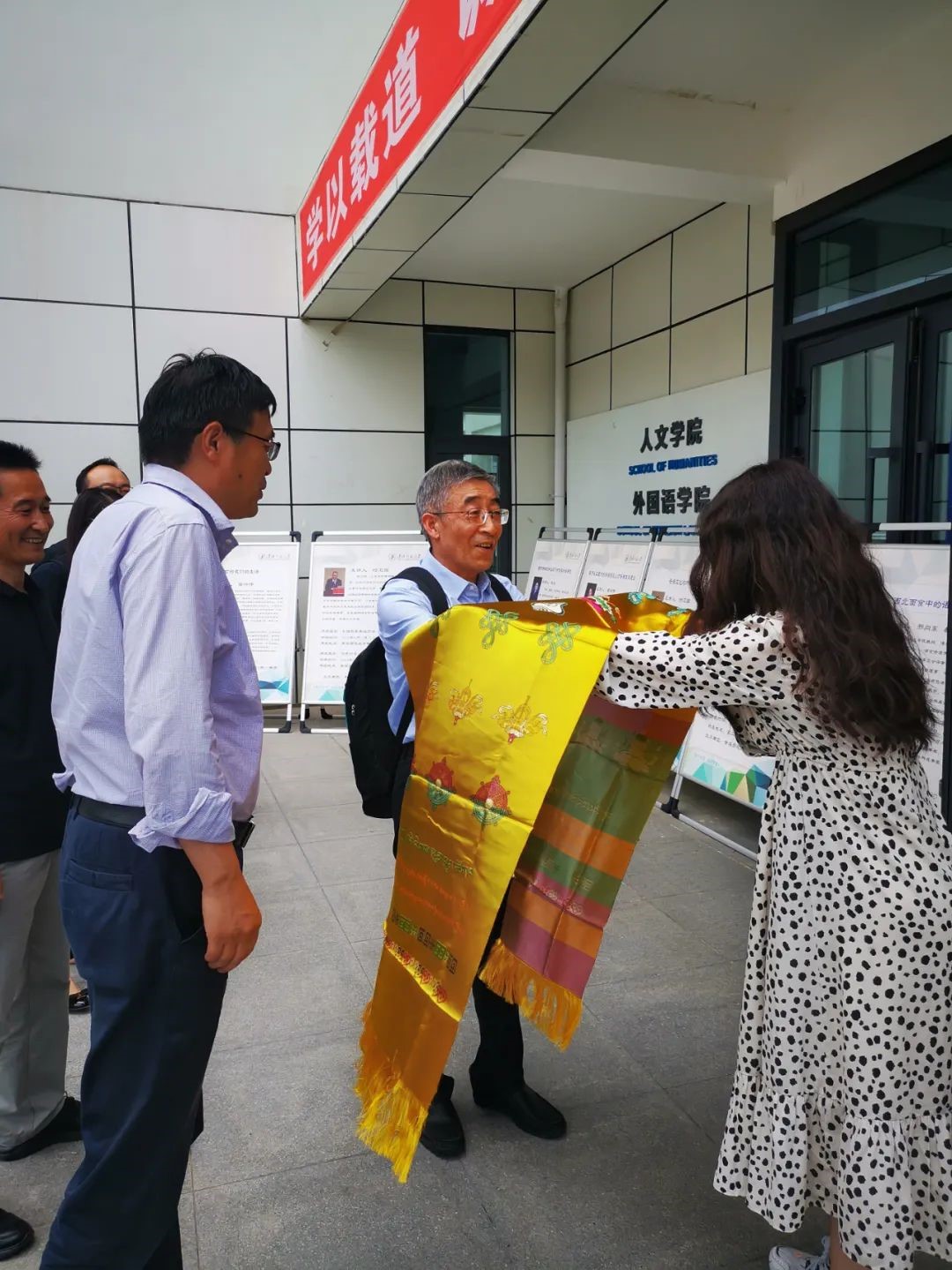 青海师大学生代表为陕西师大邢向东教授一行献上金色哈达