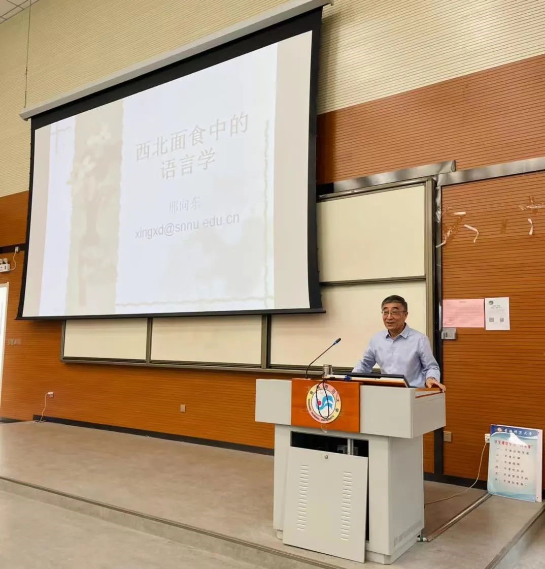 邢向东教授还为青海师大bevictor伟德官网师生作了题为《西北面食中的语言学》的学术讲座。邢教授对西北地区的“焪锅儿”“曲连馍”“饺子”“酿皮子”“黏面”“biāngbiāng面”等面食名称中所蕴含的语言学知识作了深入浅出的讲解,鼓励同学们将方言学与民俗文化联系起来,在日常生活中挖掘语言学的奥秘。