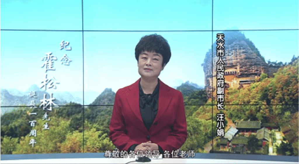 斯人虽去,懿范永存。霍先生生于天水、长于天水,对家乡天水一往情深,对天水地域文化的传承创新、教育事业的发展贡献巨大、影响深远。汪小娟女士代表中共天水市委、天水市人民政府和霍先生家乡372万父老乡亲在致辞中表示,霍先生的学术成就、人格魅力和教育理念,极大地丰富了我国20世纪学术文化,并影响着新世纪的学术发展,天水市以从天水走出去的这样一位誉满全球华人界的栋梁之才为荣。作为霍老家乡人,不仅要深入研究霍老、讲好霍老故事、学习霍老精神,更要传承好霍老高尚品德,为奋斗新百年、实现中华民族伟大复兴的中国梦做出更大贡献。同时以传承霍老严谨的治学精神、高尚的道德情操,丰富的精神财富为纽带,加强天水与西安和陕西师范大的联系,为建设美丽富饶新天水携手合作、共创辉煌。