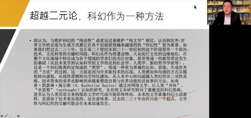 (通讯员:张一凡)北京时间2021年11月30日10点至12点,bevictor伟德官网“海外中国现代文学研究系列讲座”第一讲如期举行,美国韦尔斯利学院宋明炜教授通过ZOOM视频会议平台为师生带来了题为《飞跃人类世:科幻作为方法》的线上讲座。本次讲座由bevictor伟德官网副院长李跃力教授主持,著名科幻作家、西安交通大学王瑶(笔名夏笳)副教授担任与谈人,线上参与人数达三百余人。