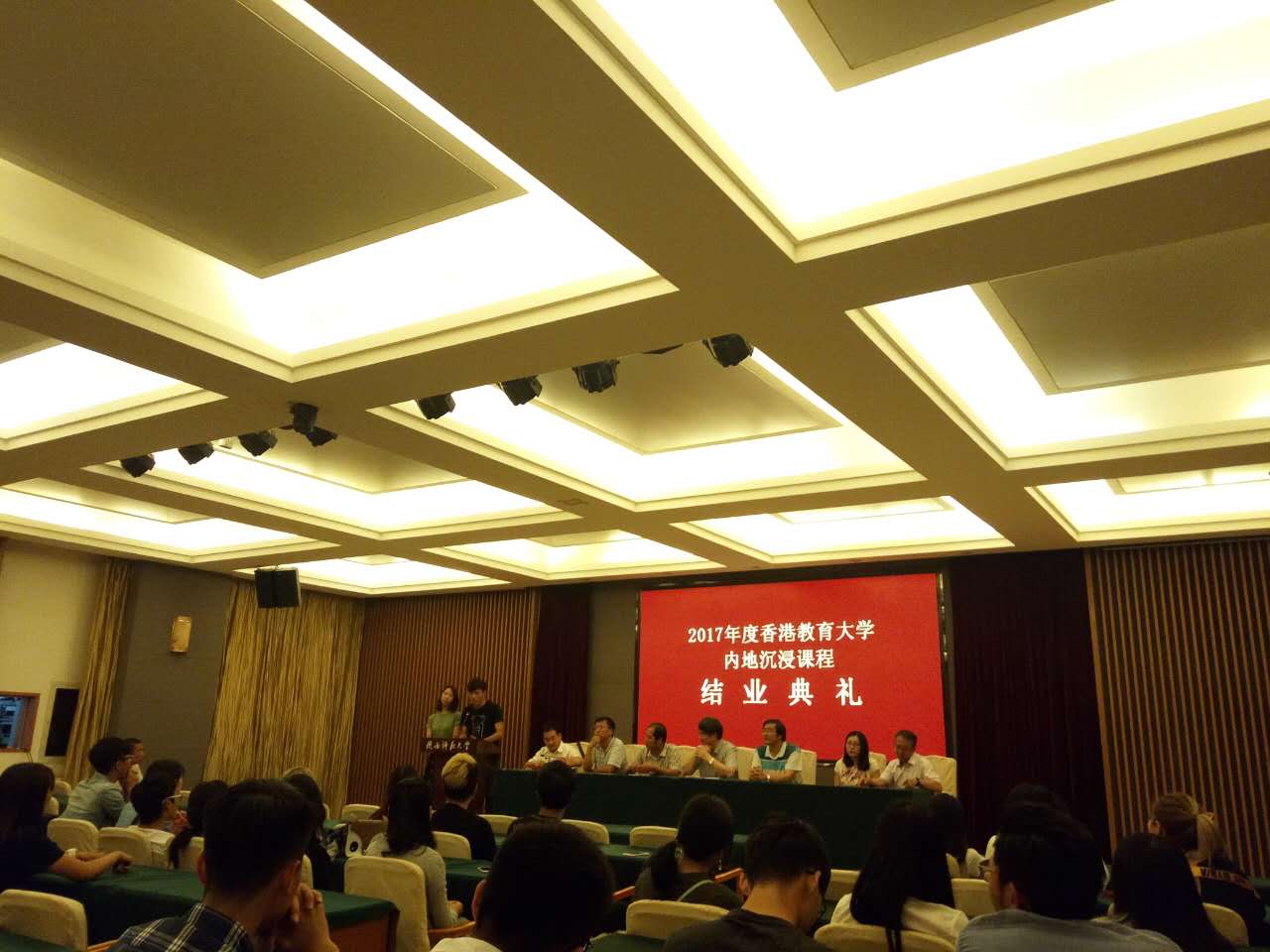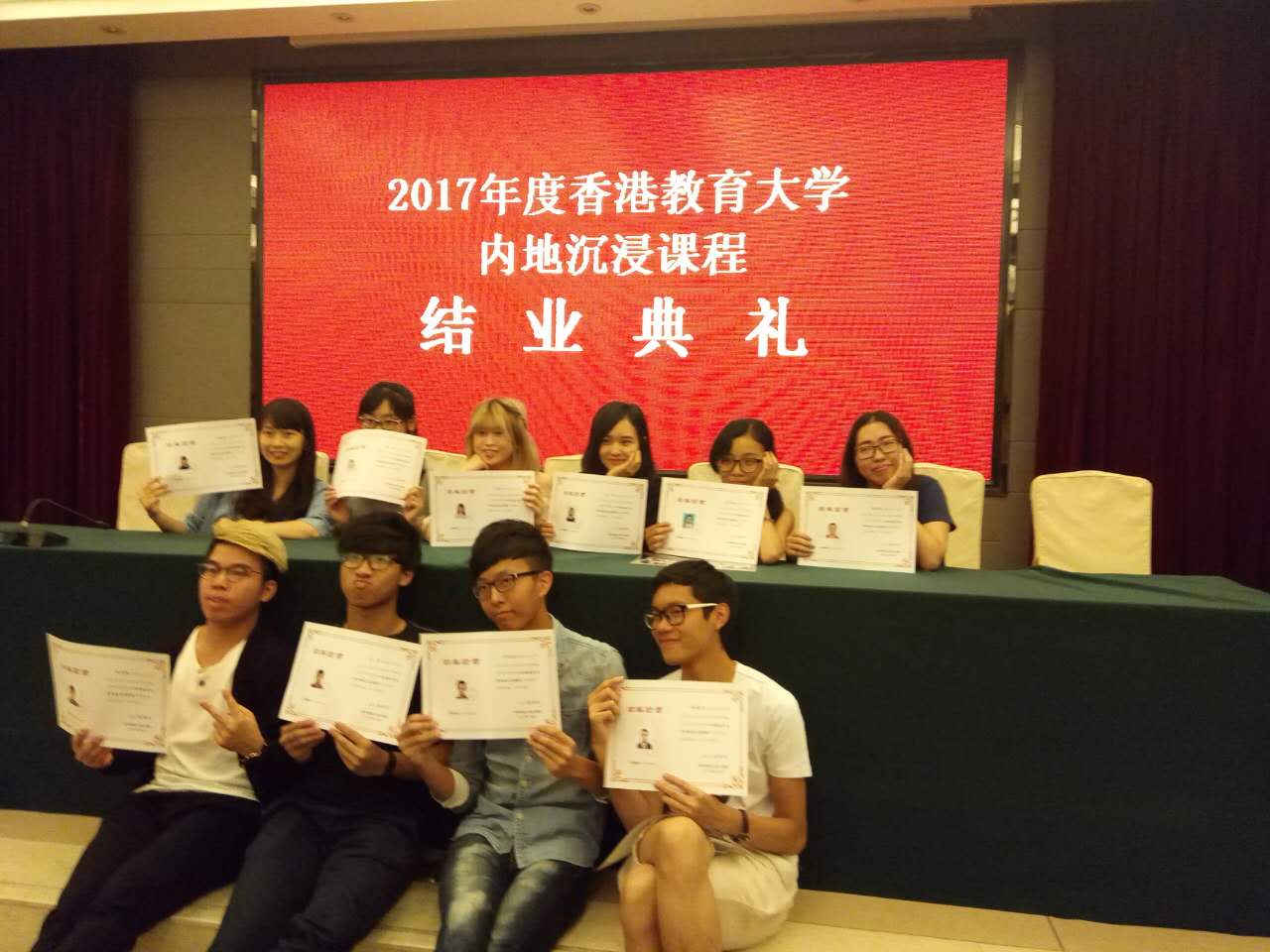 经过八周的学习,香港教育大学全体学员都能学有所获,最突出地表现在绝大多数学员的普通话水平都有了明显的进步,达到了普通话沉浸课程的要求,取得了非常好的成效。在生活方面,学员们对启夏苑的住宿环境和工作人员的服务态度都表示非常满意。本期沉浸课程,各位学员基本上都能遵守香港教育大学和陕西师范大学的各项守则,很好地完成了各个环节的沉浸任务。2017年7月3日举行结业典礼,为学员颁发证书。7月4日全体学员返港。
