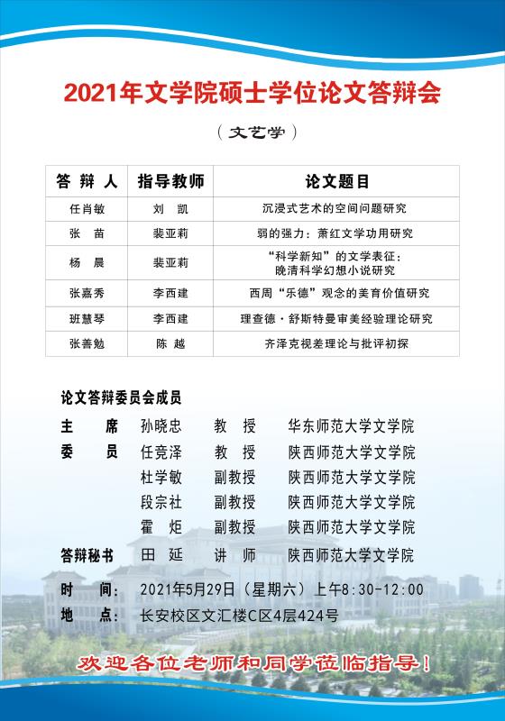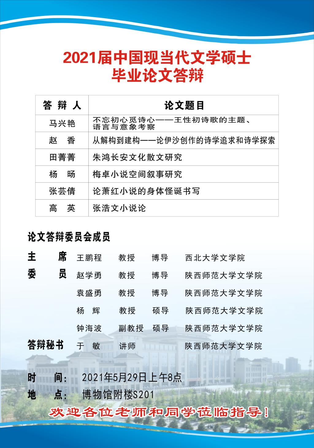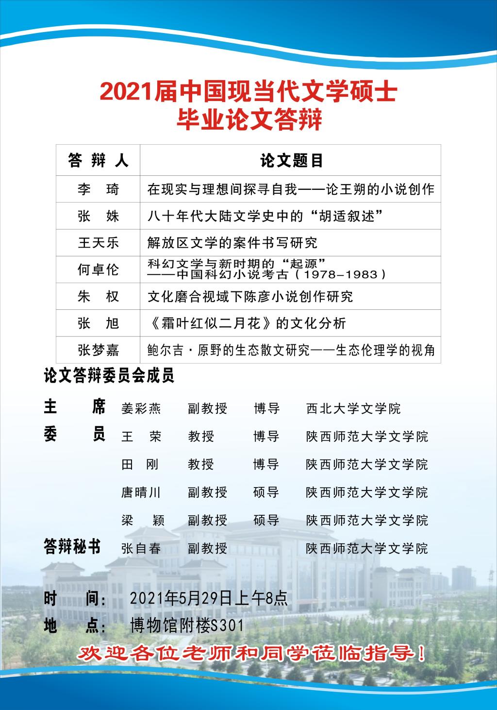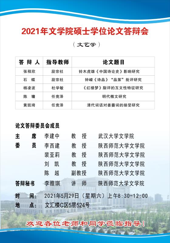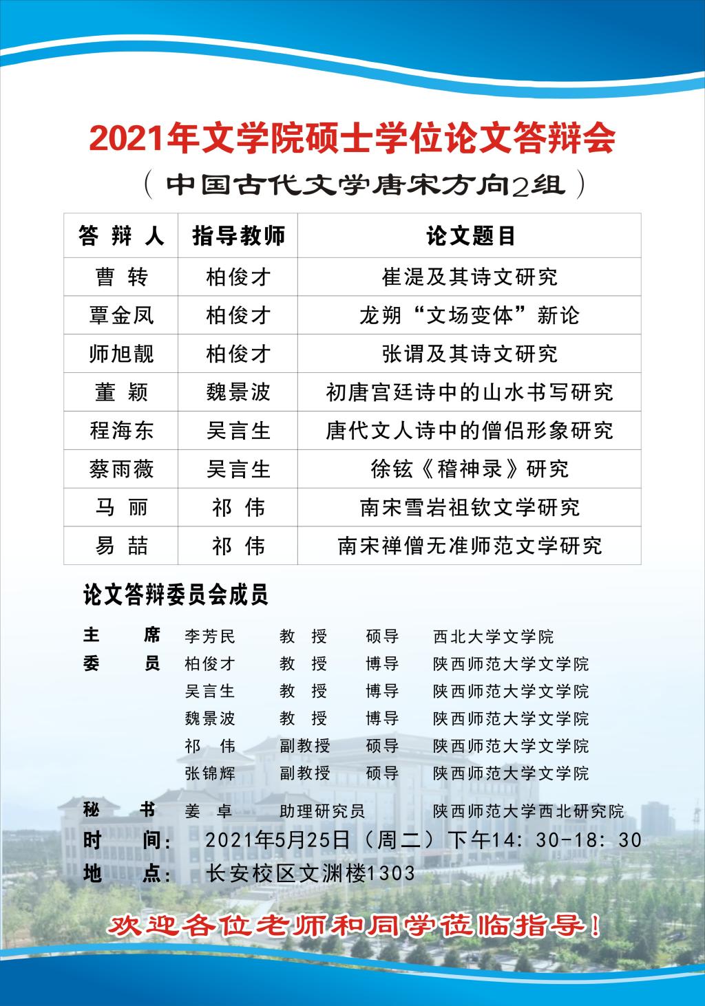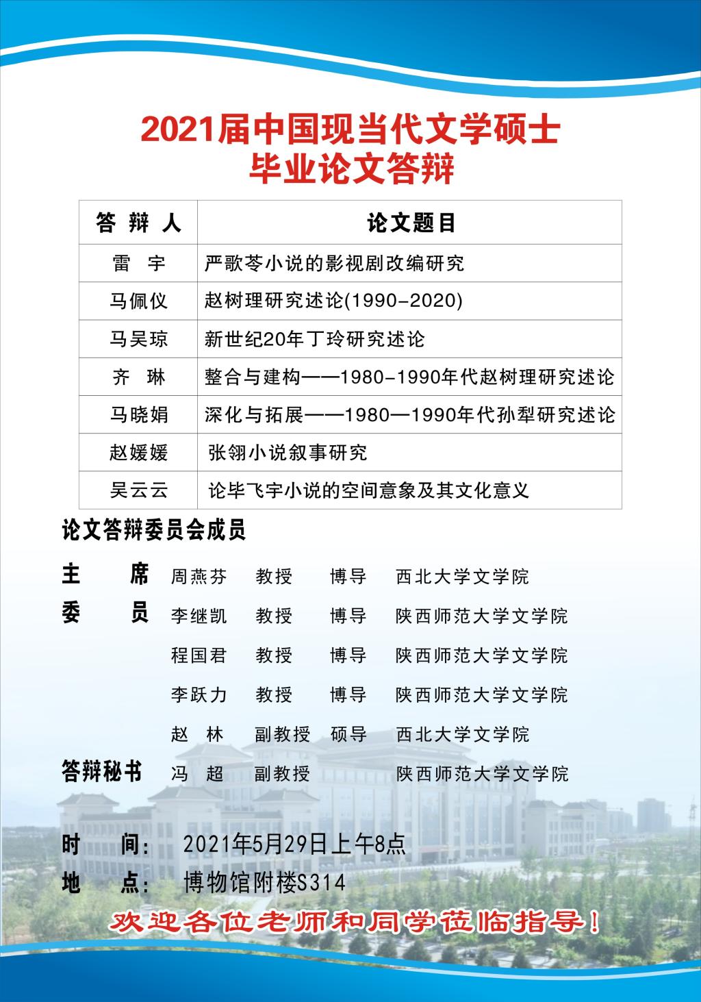 我院2021年上半年研究生答辩安排(十二)-(十五)