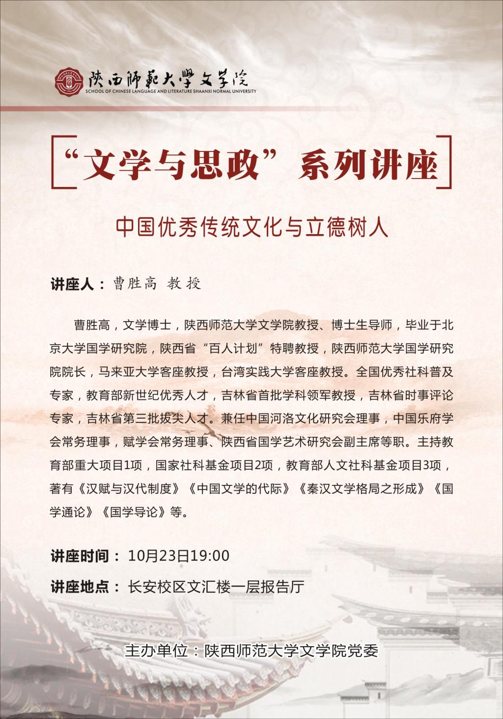 “文学与思政”系列讲座第二讲预告